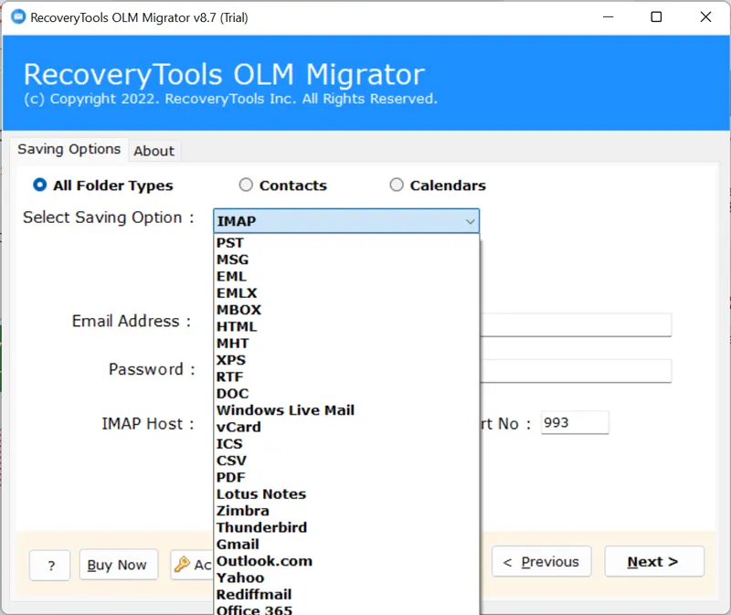 - 现在选择IMAP作为可用列出选项中的保存选项。