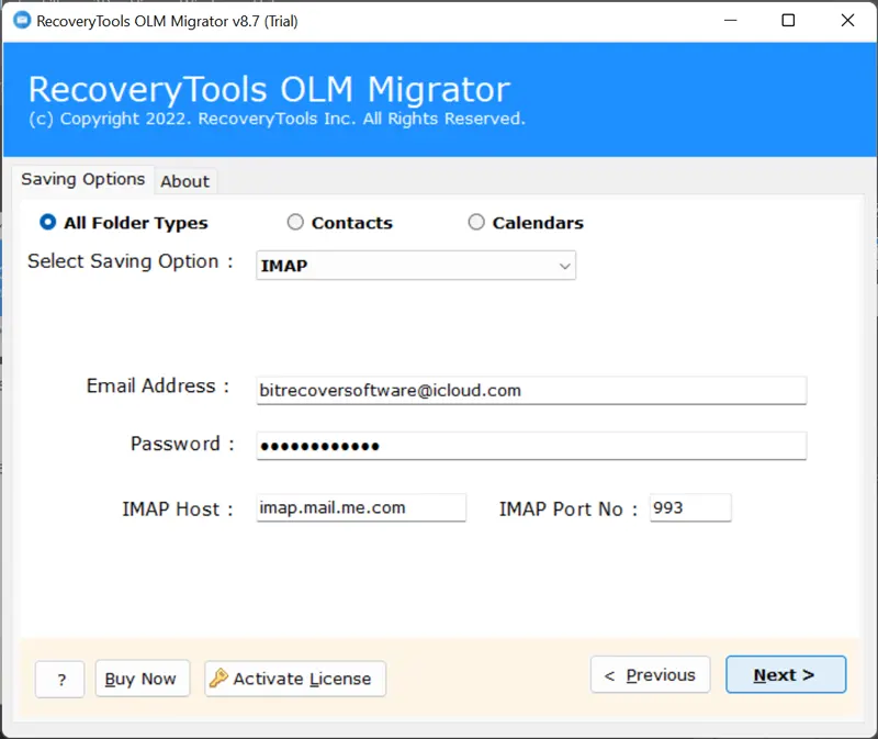 答: 是的,当然!该工具能够将 OLM 文件导入 iCloud,包括电子邮件、联系人和日历数据。