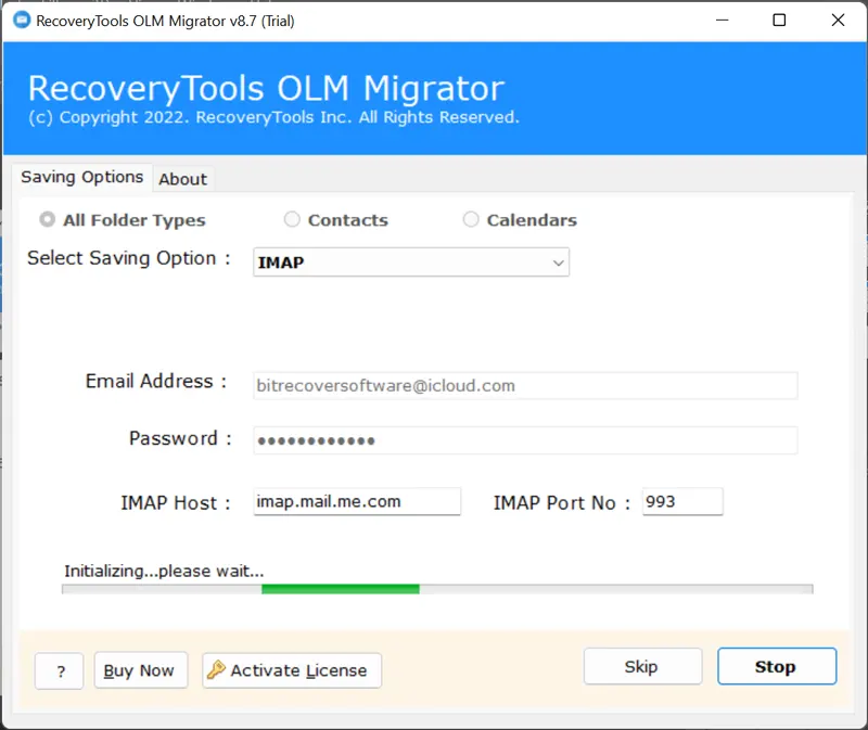 - 启动 OLM 到 iCloud导入工具在你的电脑上。