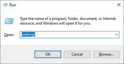 您可以通过启动“运行”命令来执行此操作。接下来,输入inetmgr。然后,单击“确定”按钮打开 Windows Internet 信息服务 (IIS) 管理器