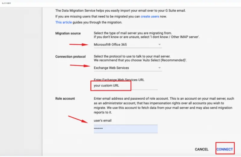 - 现在,你必须将您的 Office 365 电子邮件与新的 Google Workspace 相匹配账户。