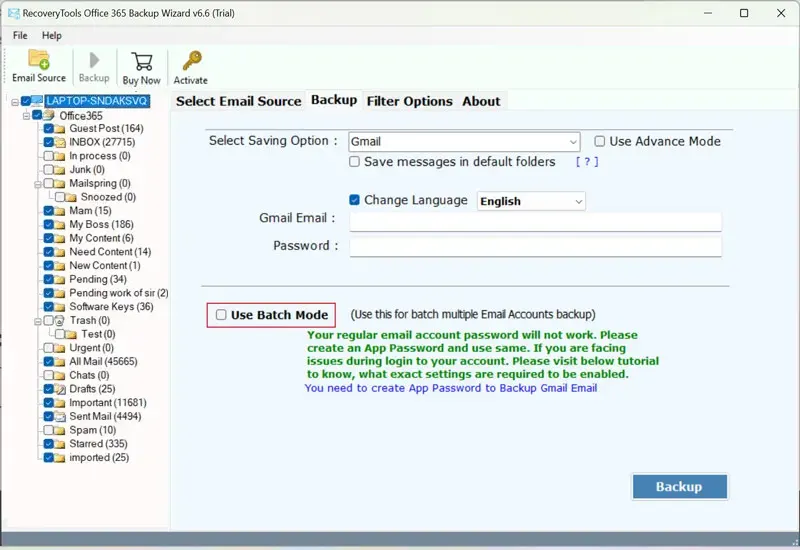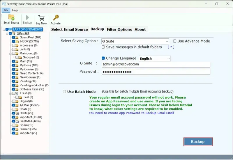 - 备份您的宝贵数据。使用Office 365 电子邮件备份工具创建您的数据的副本。所以,如果发生任何事情,你至少有数据。