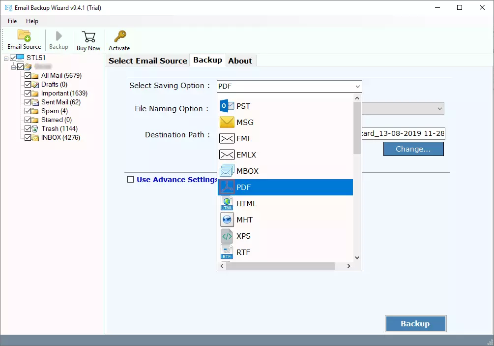 - 用户可以将电子邮件导出为多种保存格式,如 PST、MBOX、EML、MSG、PDF、CSV 和电子邮件服务,如 Yahoo、Outlook、Gmail 等。