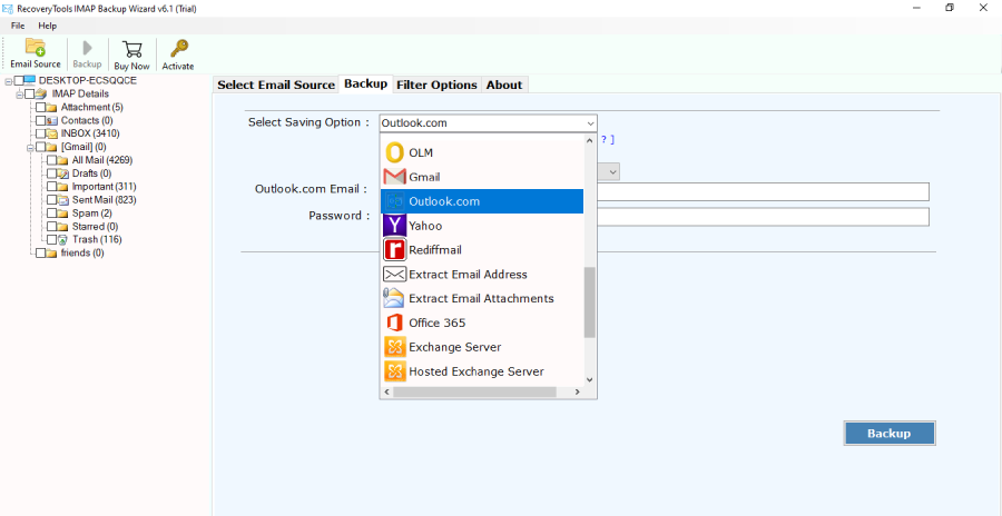 首先,下载并安装IMAP 到 Outlook.com 转换器在您的 Windows 或 Mac 计算机上。