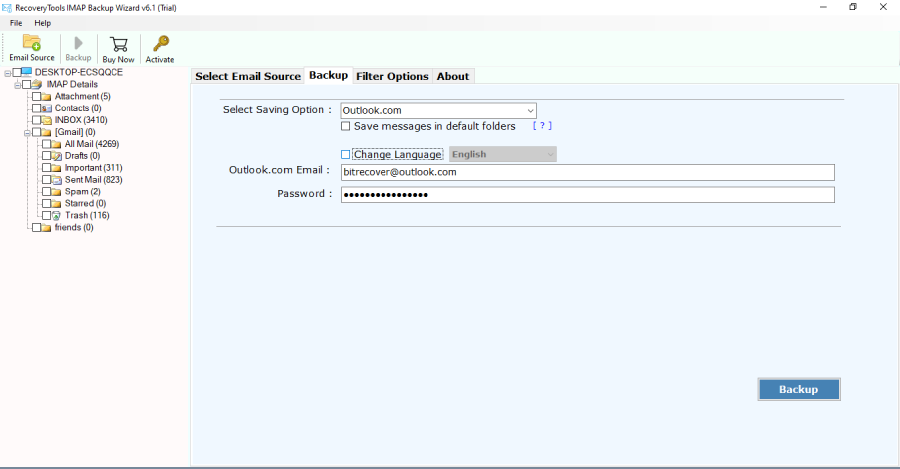 如果您要离开现有的 IMAP 帐户并希望将 IMAP 邮箱移动到 Outlook.com,请使用BitRecover IMAP 邮件备份工具。它是轻松将电子邮件从 IMAP 服务器迁移到 Outlook.com 帐户的有效解决方案。