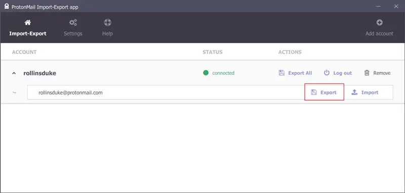 - 您的 Protonmail 帐户是连接成功,现在选择全部导出选项。