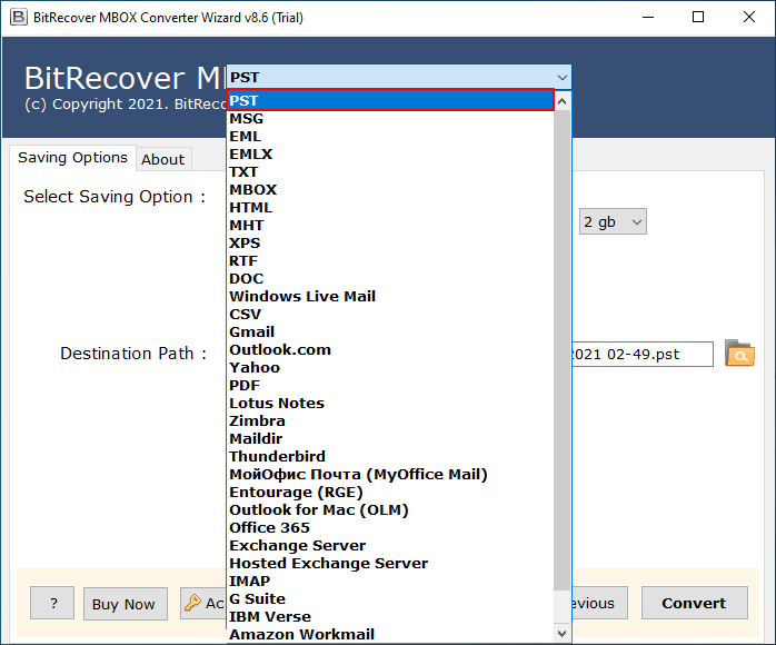 - 之后,启用“为每个 MBOX 创建单独的 PST“ 和 ”分割太平洋标准时间” 根据您的需要按大小进行文件。