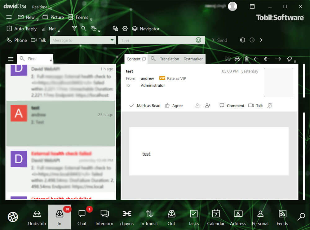 Tobit David 软件不存储任何类型的电子邮件信息。它是一个代理,可以帮助用户将电子邮件从服务器传输到主机。目前大部分用户都在使用大卫 v3。因此,用户的查询也是基于David v3。