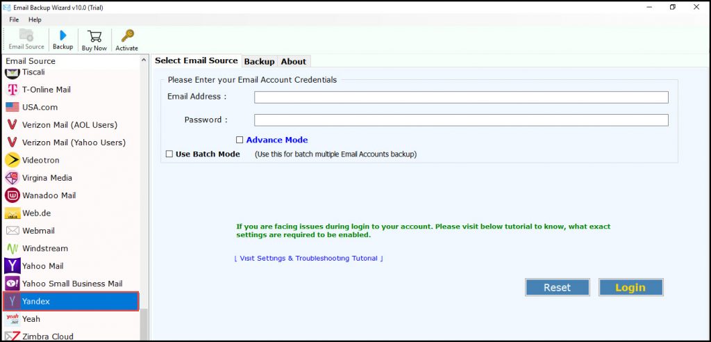 相同的解决方案是电子邮件备份向导。它是一种智能解决方案,无需任何高配置设置即可将Yandex智能导入Gmail。您可以通过点击下面给出的绿色按钮来下载该软件。