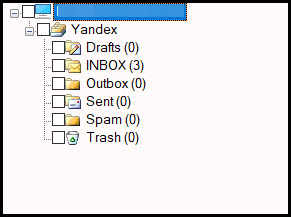 5.在预览部分,该解决方案加载 Yandex 的所有邮箱文件夹。