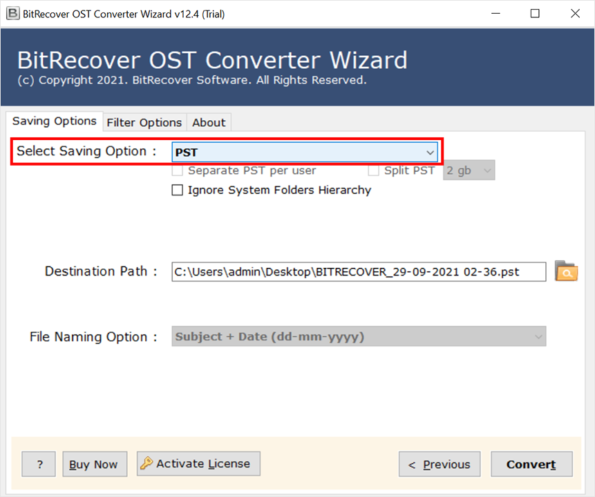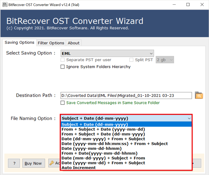 - 您还可以从文件命名选项中为 OST 文件选择一个名称。