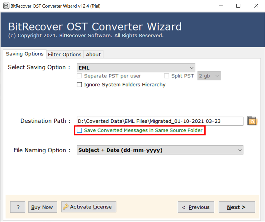 试用OST 文件转换软件只需点击几下鼠标即可将 OST 文件保存到所需路径。无论您想将 OST 文件移动到新计算机、任何位置、任何格式或任何电子邮件客户端。