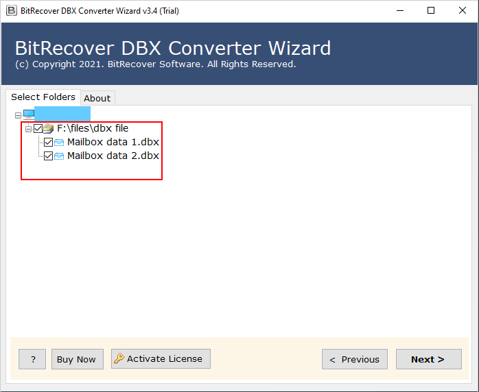 这BitRecover Outlook DBX 文件转换器是执行所需任务的最简单且最有效的方法之一。这样可以将 Outlook Express 顺利移动到新计算机。不改变数据的原创性和相关电子邮件属性。您只需勾选文件夹前面的复选框,而无需找到每个文件夹。