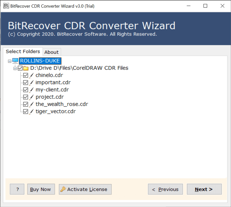 - 在这里,您需要检查包含 CDR 图形的所需文件/文件夹,然后点击下一个。