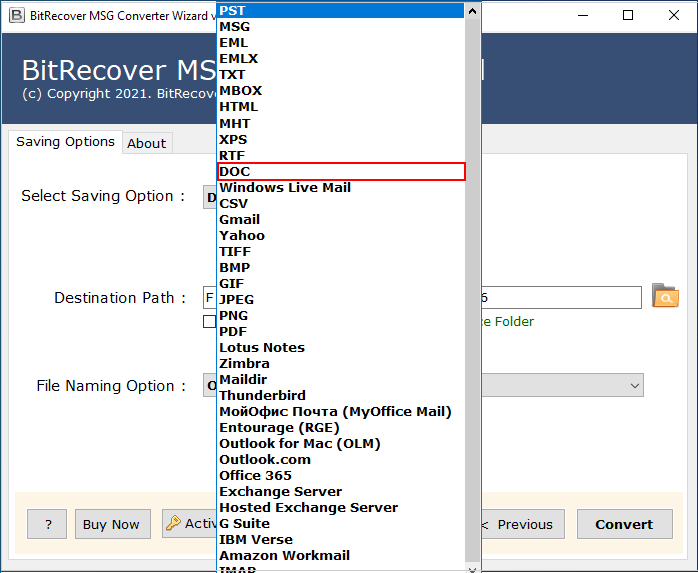 - 之后用户必须单击转变选项卡将 MSG 转换为 DOC。用户可以在屏幕上看到实时转换过程。