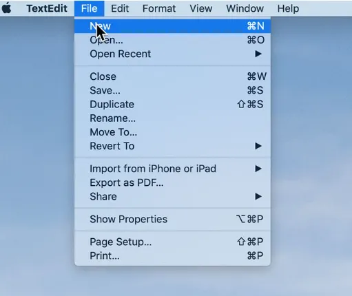 - 打开文本编辑MacBook 上的应用程序并选择文件。