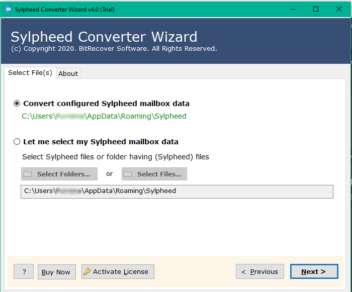 然后,启用复选框转换配置的 Sylpheed 邮箱数据。这将自动获取 Sylpheed 崩溃的电子邮件进行转换。
