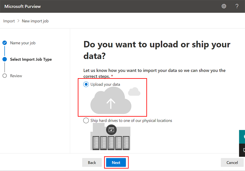 - Microsoft 收到您的硬盘并完成处理后,开始过滤数据并创建 Outlook PST 导入作业。