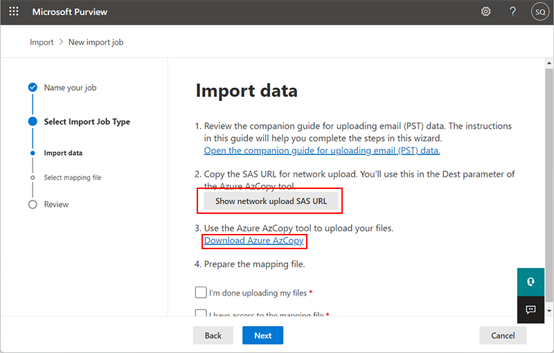 从备份恢复 Office 365 电子邮件的第二种免费方法是使用 Azure AzCopy 的网络上传方法。请按照本指南使用此过程: