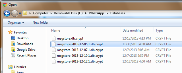这个过程将在这里开始——首先,重命名 msgstore.db.crypt,然后添加 OLD 或其他类似于文件名的内容。现在检查下面的文件:应该有几个标有不同日期的文件。然后选择您要恢复的文件 -找到一个文件在你不小心删除了所有内容之前。然后将其重命名为msgstore.db.crypt。
