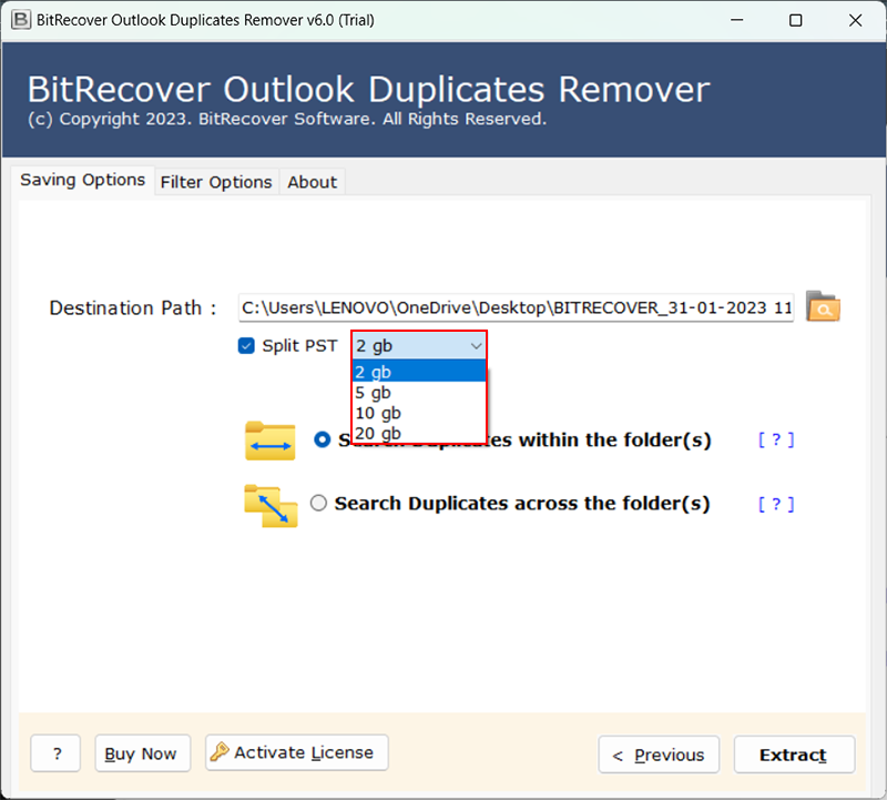 用户查询:BitRecover 团队您好,作为 Outlook 管理员,我有几个包含重复电子邮件的 PST 文件。我想从 PST 文件中删除重复的电子邮件,以获得更好的 Microsoft Outlook 性能。我的一些 PST 文件有大约 50 GB 的数据,因此我想将 PST 文件分割成小部分,同时删除重复项。我尝试使用清理功能来解决我的问题,但这对我来说没有效果。你们有专业的软件或服务可以根据我的选择删除 PST 中的重复电子邮件吗?