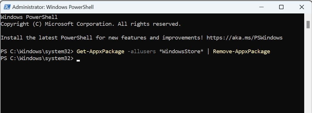 - 接下来,运行以下命令重新安装微软商店在 Windows 11 上。