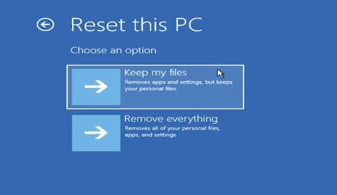 之后,您可以从两个选项中进行选择。微软对该选项的描述如下:保留你的文件或删除所有内容