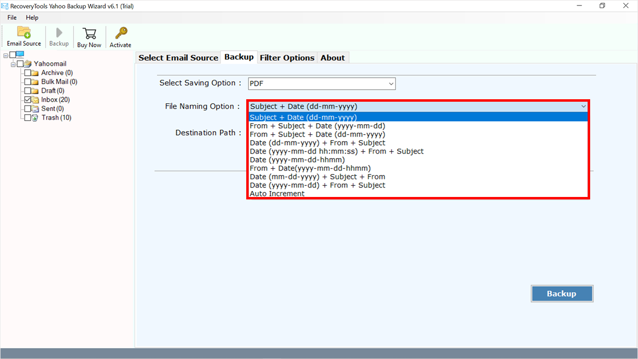 是的,您可以将雅虎邮件数据迁移为任何类型的文件格式,该软件为您提供了 30 多种文件格式。