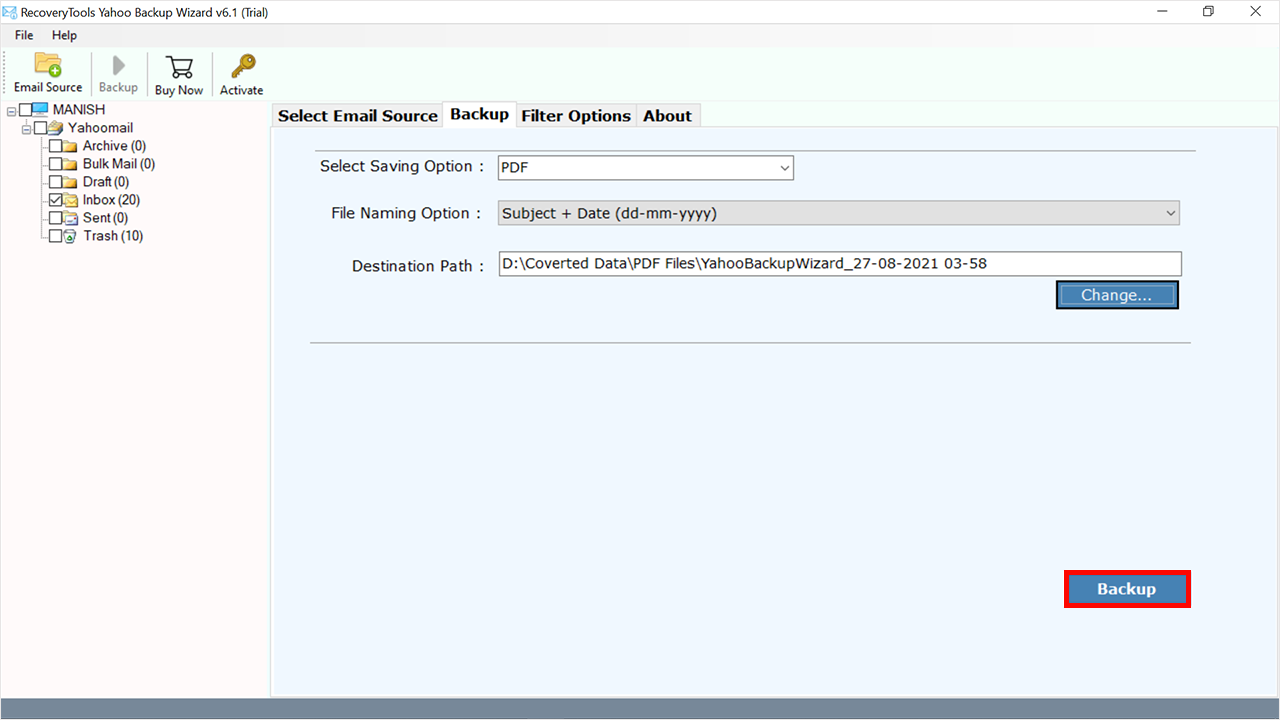 如您所见,手动方法很方便,但有一些限制和限制。因此,用户可以对某些数据使用手动方法,如果您想从雅虎邮件保存大量数据,那么最好的解决方案之一如下: