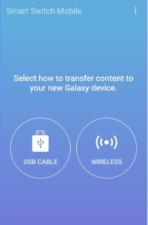 - 步骤 1. 下载并在您的 Samsung S22 智能手机上安装并启动 Smart Switch 应用程序。然后选择适当的方式通过 USB 或无线传输数据。如果您选择 USB 选项,请确保您有 USB 转闪电适配器来连接两个设备。