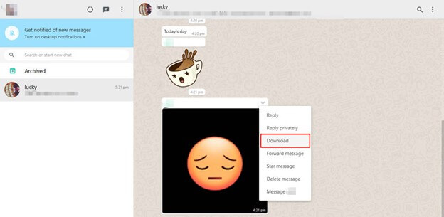 - 步骤2. 帐户同步后,您可以访问聊天并下载图像。点击下载图标将图像保存在默认文件夹中。