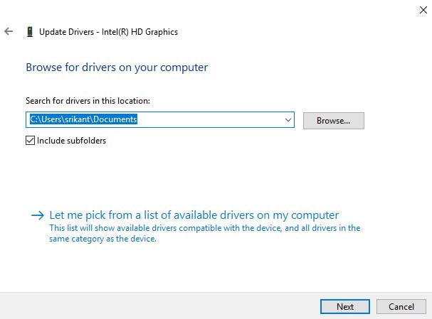 - 此外,您可以通过单击“让我从计算机上的可用驱动程序列表中选择”来安装预构建驱动程序,