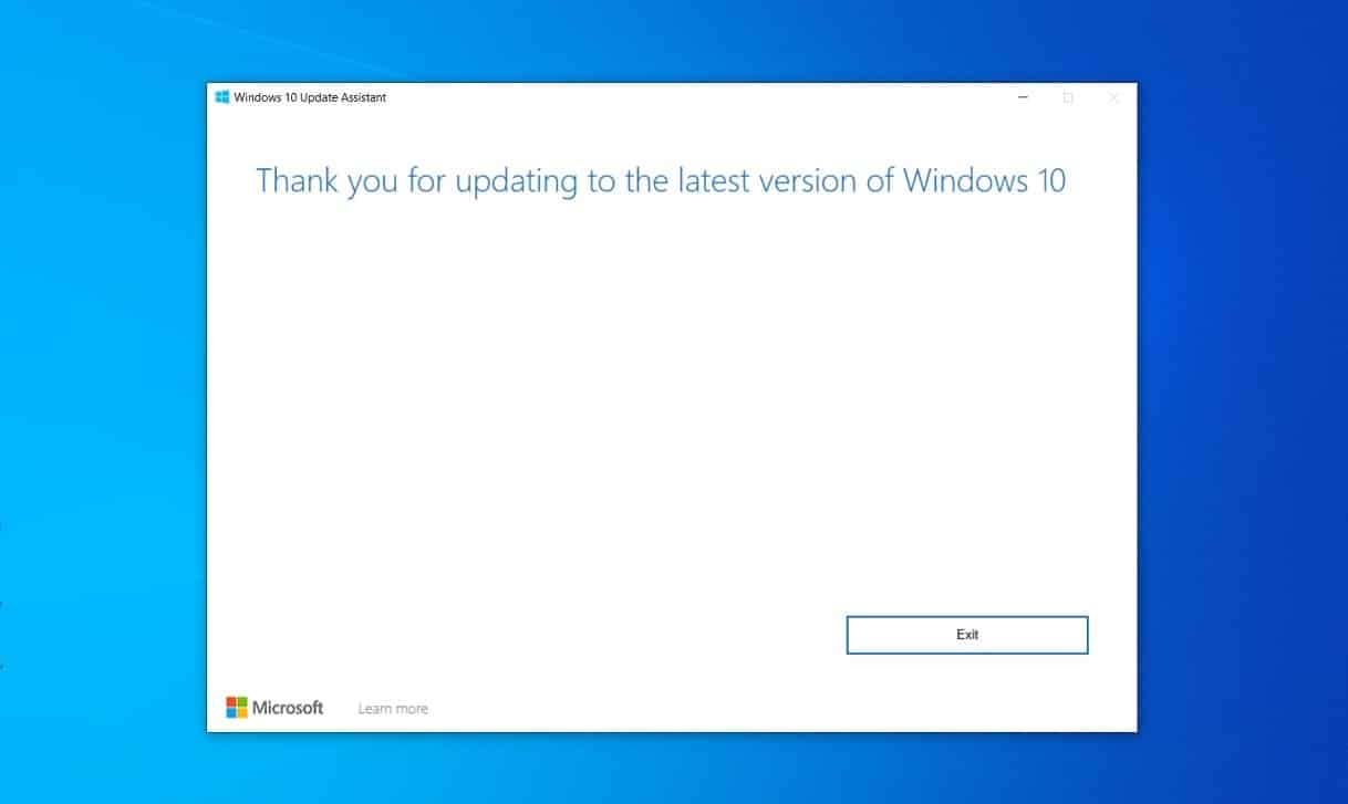 然后您将看到登录屏幕,输入密码并返回系统后,您将遇到更新助手的最终屏幕,例如,感谢您更新到最新版本的 Windows 10,单击退出。