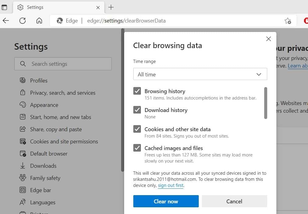 你的网站浏览器缓存存储您访问过的网页,以便您下次访问时可以快速提供服务。但有时浏览器中存在大量缓存块,可能会减慢速度或无法打开。让我们清除浏览数据并检查这是否有帮助。