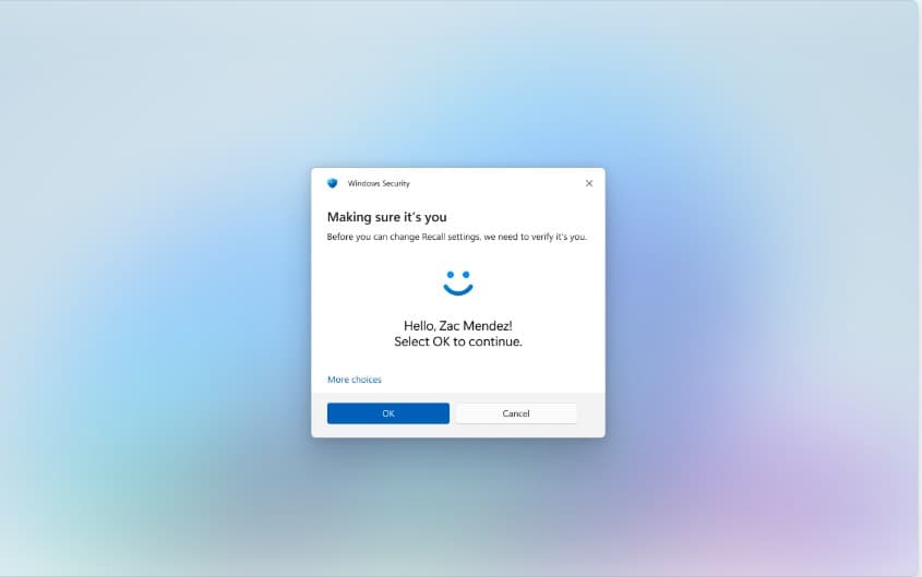 每次您打开 Recall 或更改其设置时,它都会要求您使用以下方式验证您的身份Windows 你好,可能是您的脸部、指纹或 PIN 码。这样做是为了确保只有您可以查看保存的快照或与之交互。您的数据经过加密和保护,因此可以保持私密性和安全性。