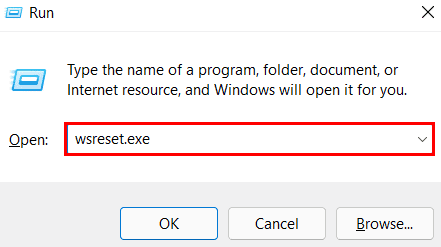 按 Windows 键 + R,输入重置程序然后点击“确定”按钮清除 Microsoft Store 缓存。现在打开 Microsoft 商店并尝试再次安装该应用程序。