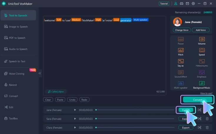 步骤#4:将文本转换为语音并导出音频(如果需要)。
