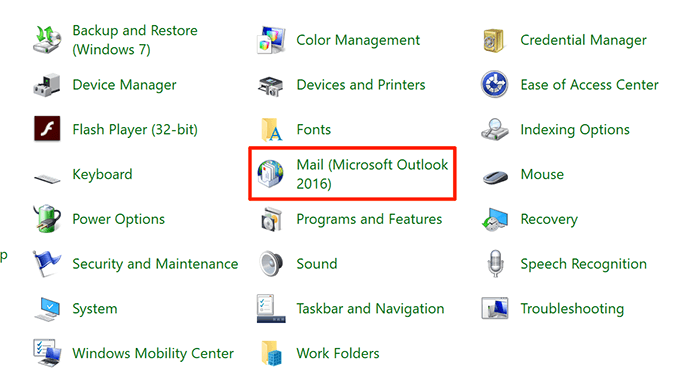 6. Windows:打开控制面板并点击“邮件”(Microsoft Outlook)。