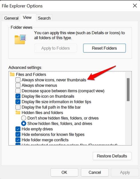 有一个选项可以启用图像的缩略图视图在您的计算机上。让我们检查一下该选项是否启用。