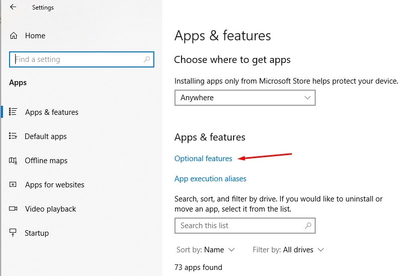 - 接下来,单击右侧的可选功能链接。