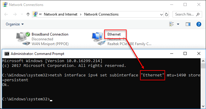 netsh interface ipv4 set subinterface “复制连接名称(见上图)” mtu=1490 store=persistent