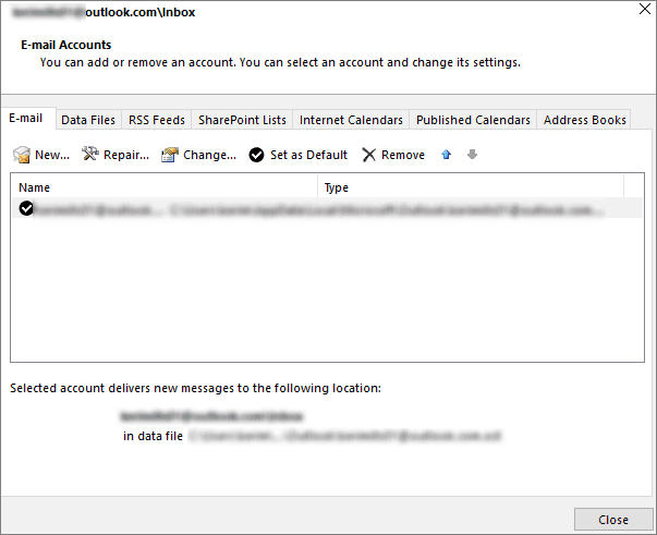 - 在“电子邮件”选项卡下,选择您的电子邮件帐户并双击它。