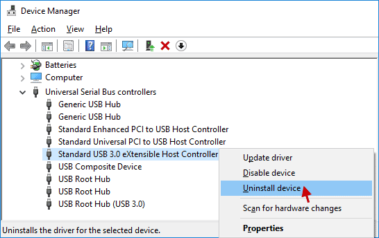 找到您遇到问题的 USB 驱动器,右键单击它并选择卸载。