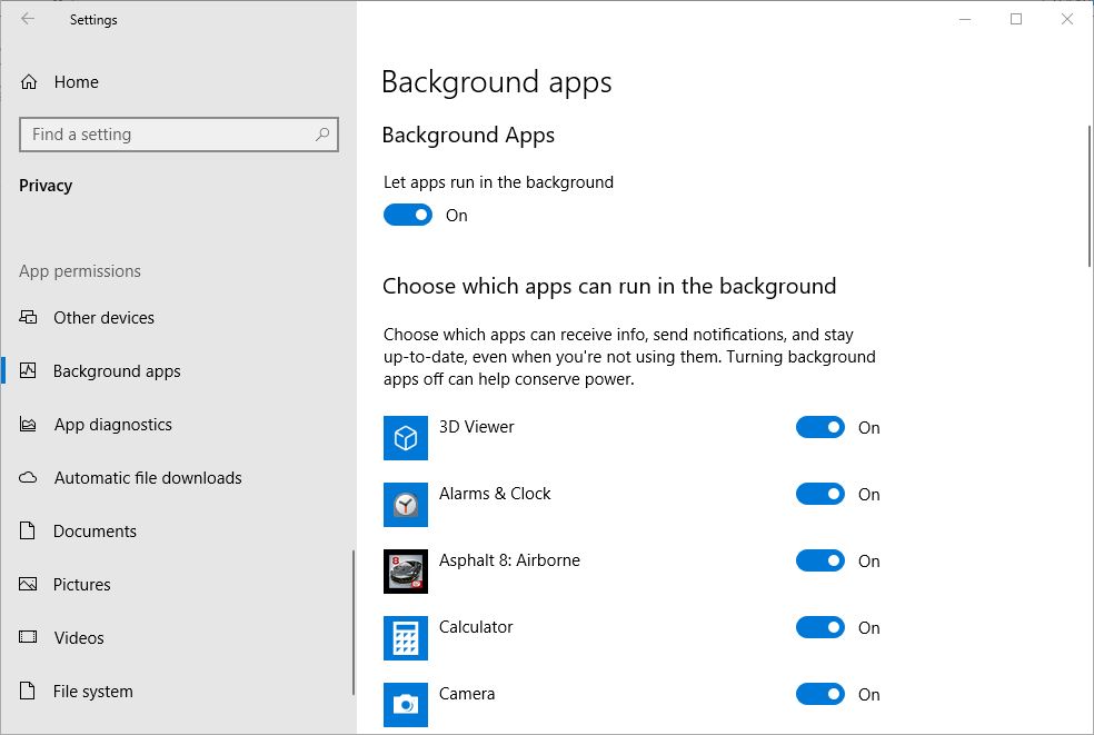 要在 Windows 10 上禁用后台应用程序,请打开设置 -> 隐私 -> 向下滚动并选择后台应用程序。