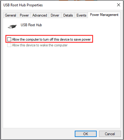 - 在“属性”窗口中,转到“电源管理”选项卡。并清除“允许计算机关闭此设备以节省电量”复选框。