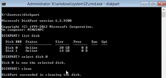 - 使用命令 select disk 选择操作系统磁盘 这应该与 WinRE 具有相同的磁盘索引。对我来说命令是选择磁盘0