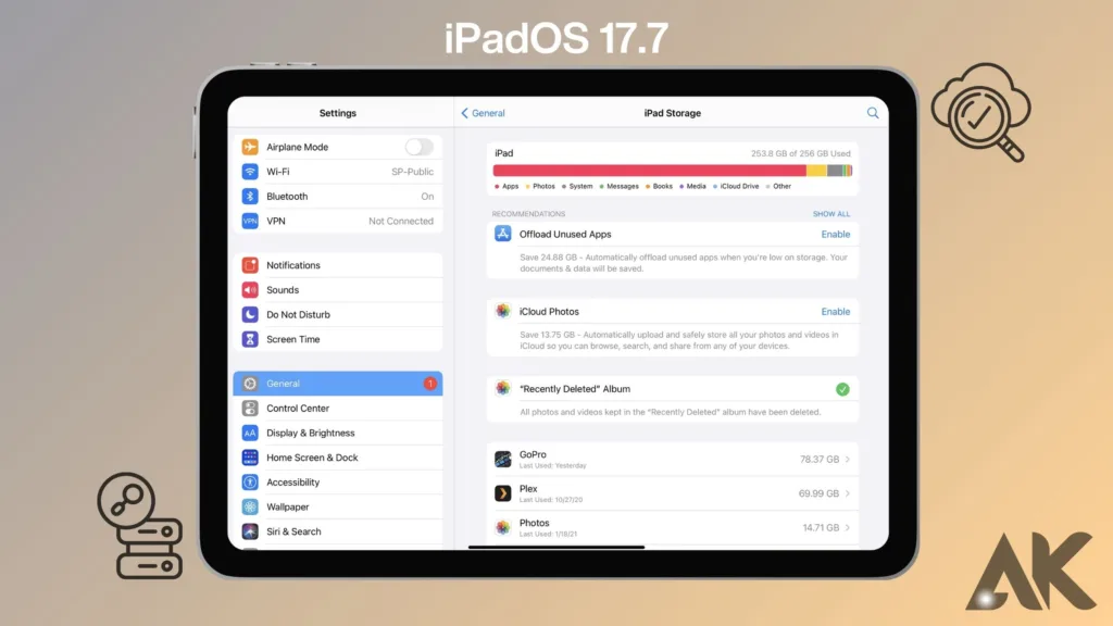 在安装如何安装 iPadOS 17.7 之前,最关键的步骤之一是确保您有足够的存储空间。该更新需要数 GB 的空间,因此检查您的 iPad 上有多少可用空间非常重要。为此,请导航至 **设置 > 常规 > iPad 存储**,您可以在其中查看存储使用情况的详细信息。如果您发现设备空间不足,则需要释放一些空间。
