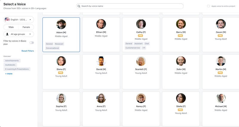 - 步骤3:在上面的搜索框中搜索您想要的语音类型。