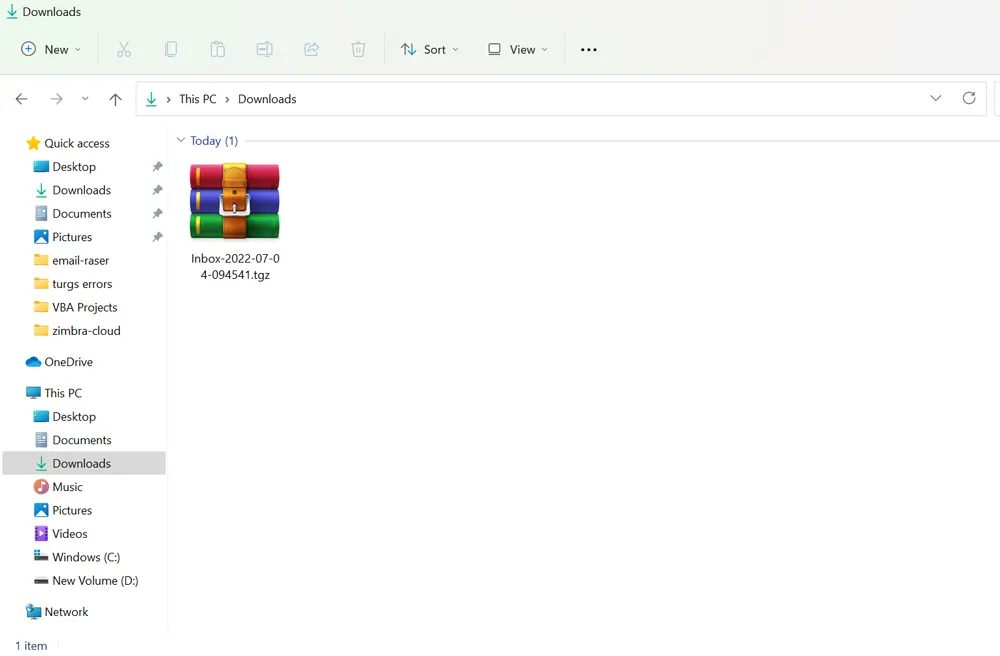 - 转到下载文件夹并查看下载的 Zipped TGZ 格式的 Zimbra 备份。