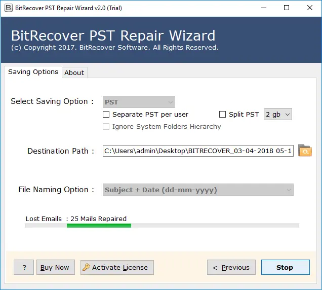 - 设置用于管理电子邮件数据的文件命名选项。点击“下一步”选项卡开始在本地 PC 上备份 Zimbra 邮件。